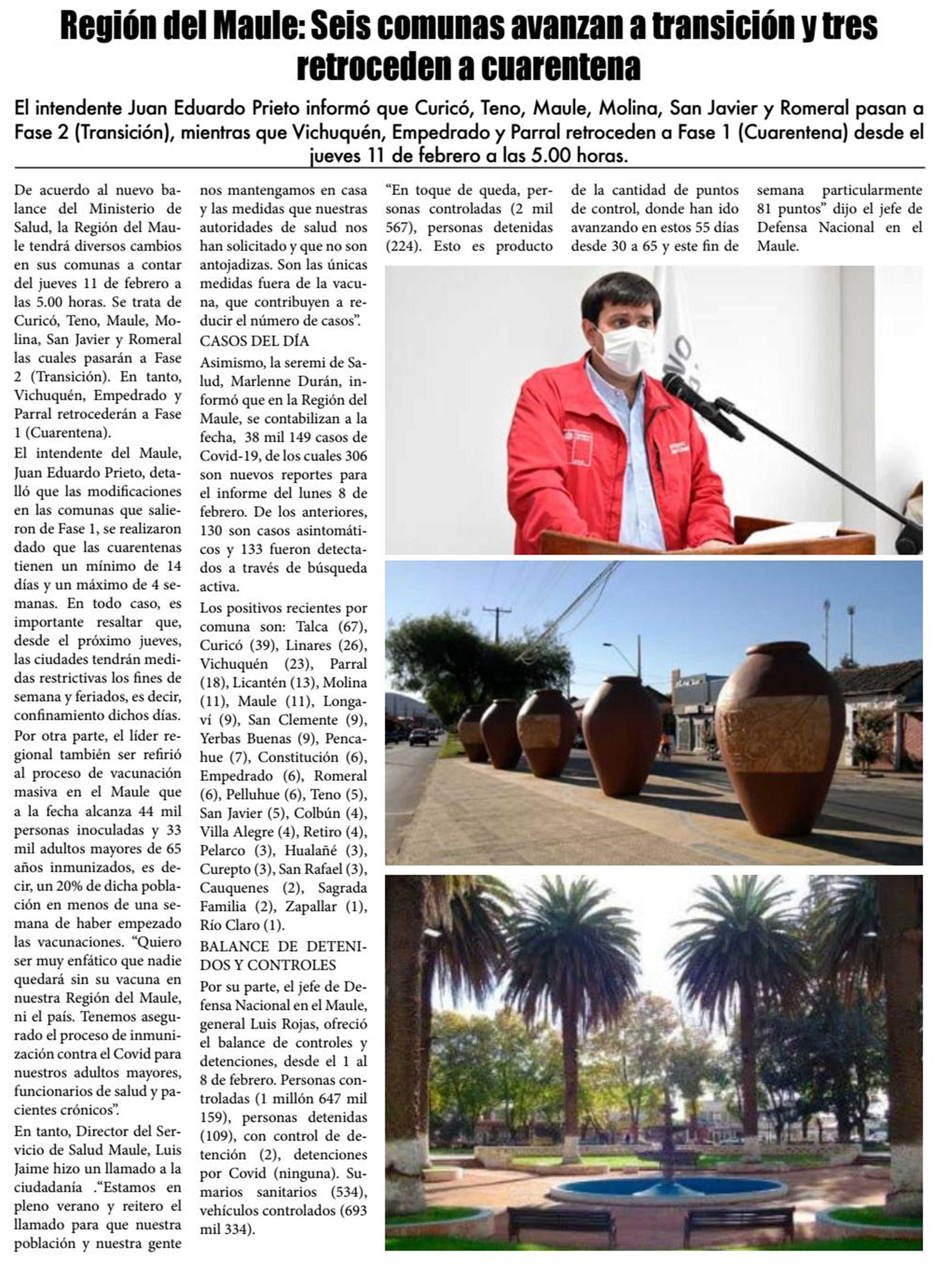 Prensa Curico Dos Comunas De La Region Del Maule Retrocederan A Fase 2 Desde Este Sabado from prensacurico.cl A partir de las 05.00 horas de este lunes 7 de diciembre, cinco comunas de nuestro país avanzaron de fase en relación al plan paso a paso, dispuesto por el gobierno para aumentar o. Por lo mismo, al pasar a dicha fase, toda la región tiene cierta libertad para circular de lunes a viernes, pero con restricciones para fines de semana y ¿qué permisos son necesarios y cuántos se pueden pedir? Región de la araucanía : Integra junto con las comunas de curepto, empedrado, pelarco, pencahue, río claro. En qué fase está de maule. Es una comuna y ciudad chilena de la región del mismo nombre en la provincia de talca, colindante con el río homónimo. Con el avance de san josé de maipo, peñalolén. Fase 2 maule está en transición.